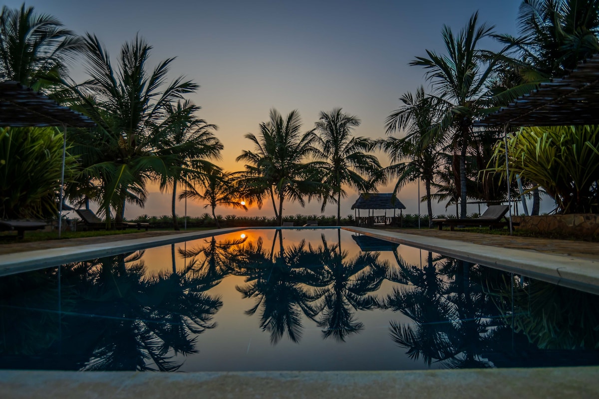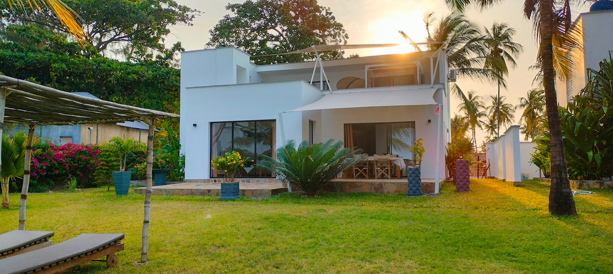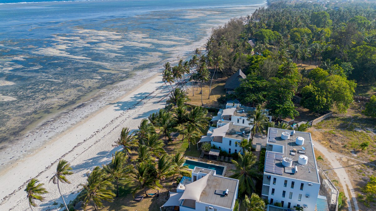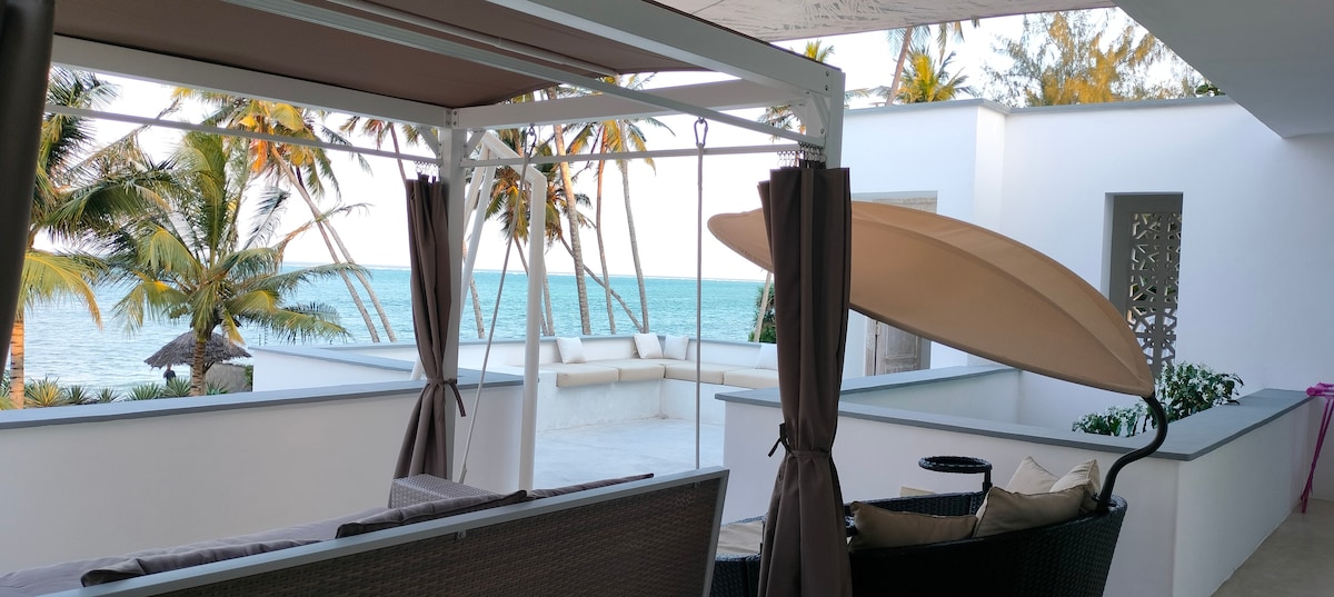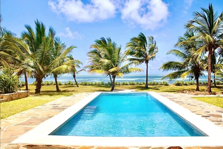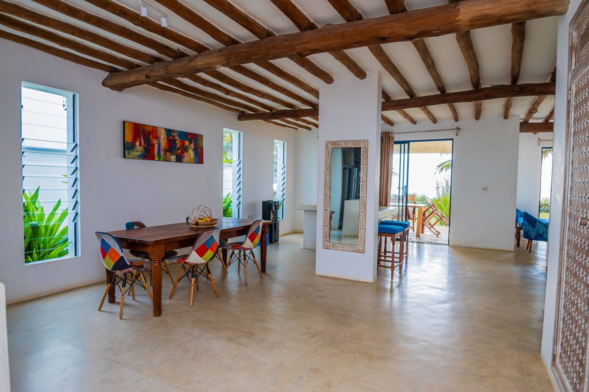 A 3BR beachfront villa in Kikambala for up to 8 guests. Serene, peaceful location with direct beach access. Features 4 beds and ensuite rooms.