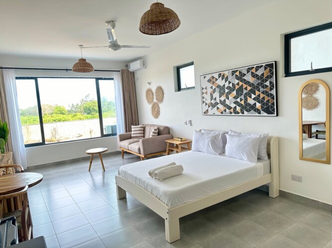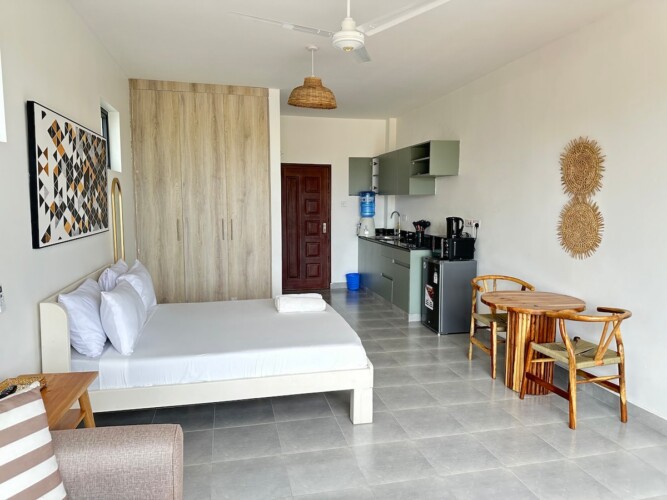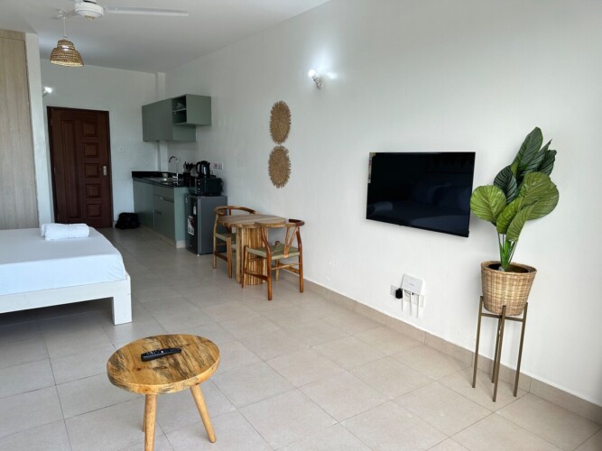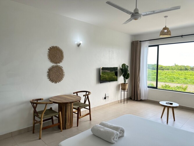A stylish studio close to Shanzu Beach. Ideal for a solo traveler or a couple. Modern finishes and close to amenities.